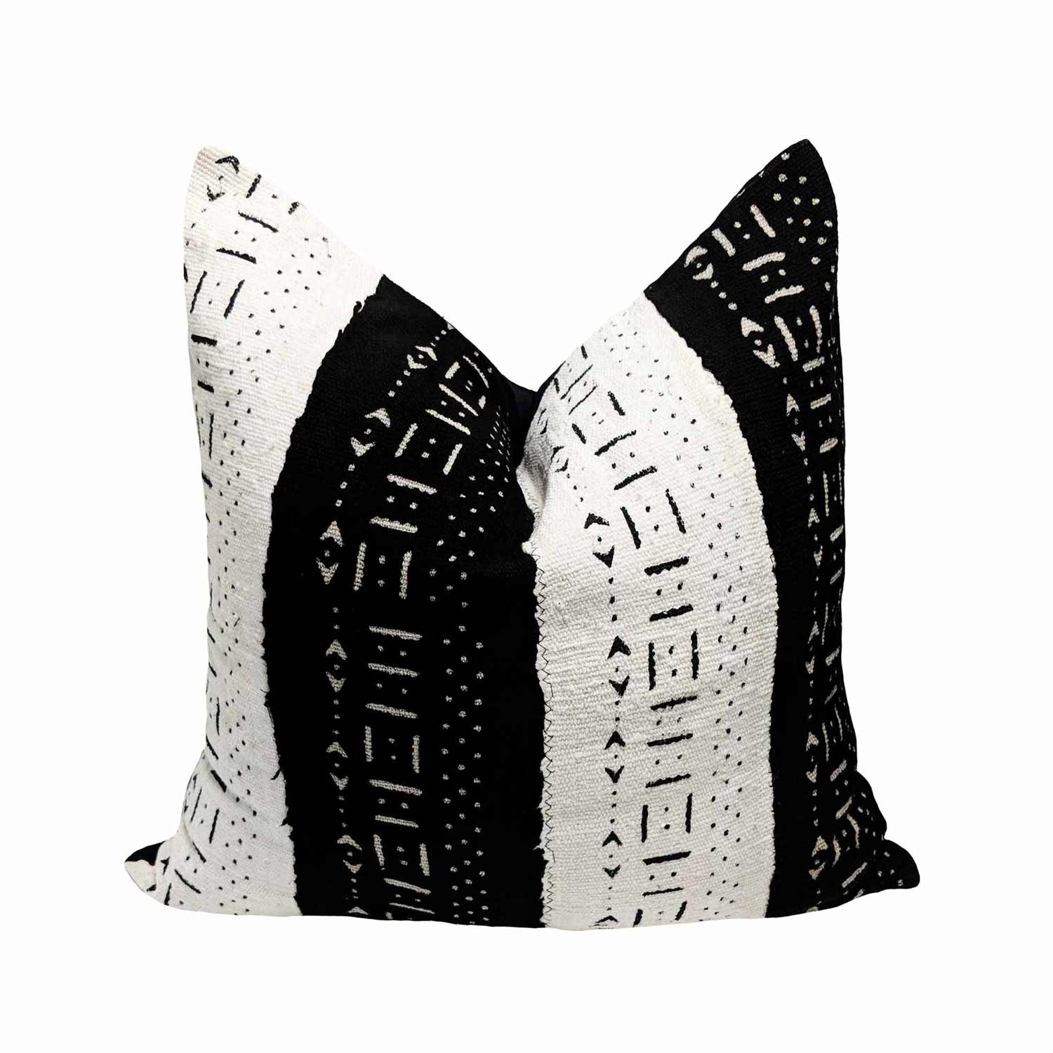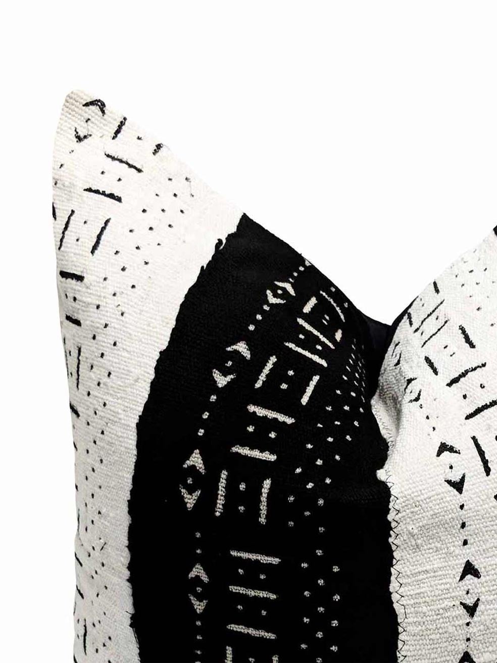 Le coussin Kobe noir et blanc est fabriqué à partir de textile Africain Bogolan tissé à la main.